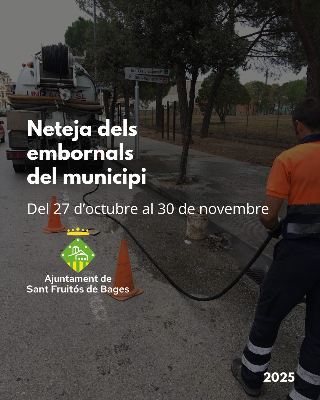 A partir del pròxim 27 d’octubre s’iniciaran els treballs de neteja preventiva dels embornals i reixes del clavegueram de tot el municipi per tal de garantir el correcte desguàs de l’aigua en cas de pluja.