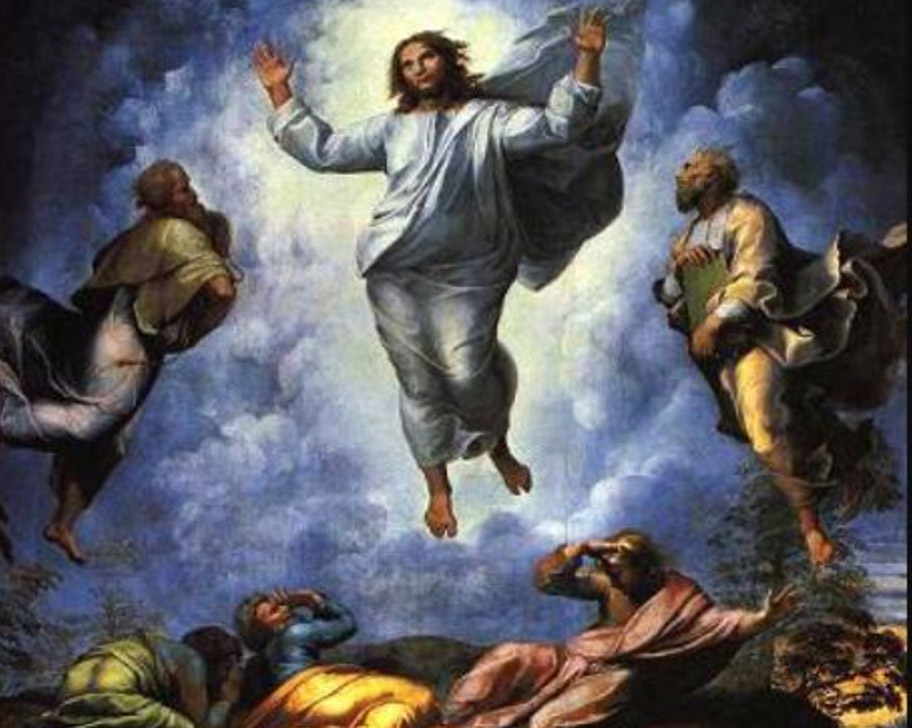 Sis dies després, Jesús va prendre Pere, Jaume i Joan, i els va portar sols a una muntanya elevada (el mont Tabor). Allí es va transfigurar en presència d’ells. Els seus vestits es van tornar resplendents, tan blancs com ningú al món podria blanquejar-los. I se’ls van aparèixer Elies i Moisès, conversant amb Jesús. Pere va dir a Jesús: “Mestre, que bé estem aquí! Fem tres carpes, una per a tu, una altra per a Moisès i una altra per a Elies”.