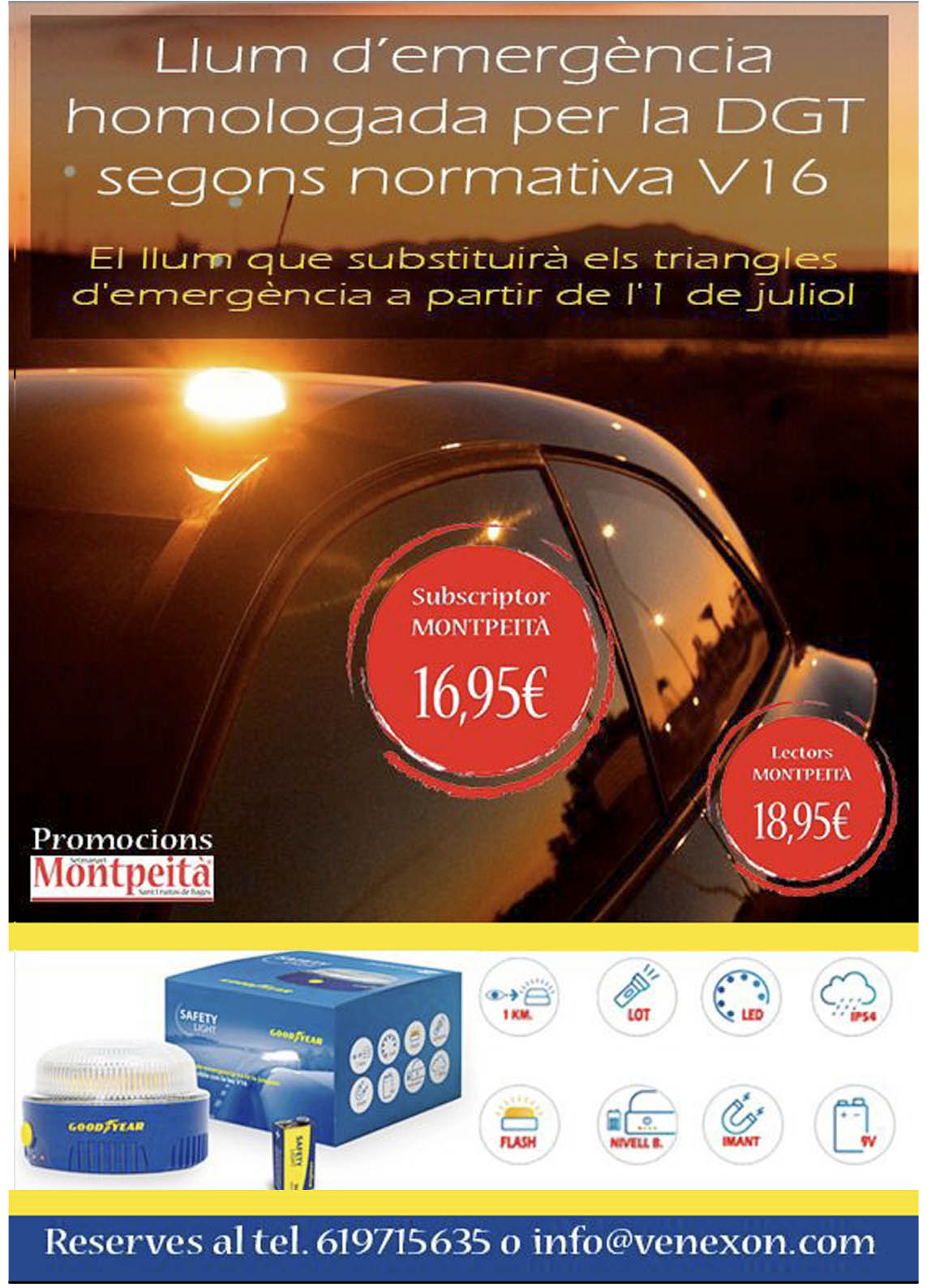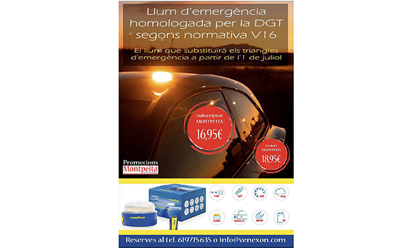 Per aquest motiu, volem oferir als subscriptors i lectors la possibilitat d’adquirir un llum d’emergència, per marcar la nostra posició sense baixar del vehicle. En aquest mateix Montpeità, trobareu les dades de la promoció i el preu d’adquisició.