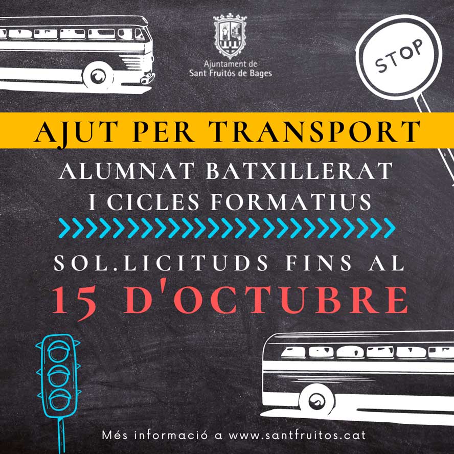 L’Ajuntament de Sant Fruitós de Bages ha obert el període per a presentar sol·licituds per a optar a diferents ajuts de menjador  als centres educatius del municipi per al transport dels alumnes d’educació post obligatòria.