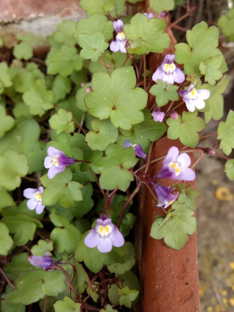 Trobat per Internet, es tracta de la Cymbalia muralis, també dita La Picardia. Nativa de la conca del Mediterrani. He llegit que és una planta simpàtica que amb la seva florida alegra els murs de pedra.