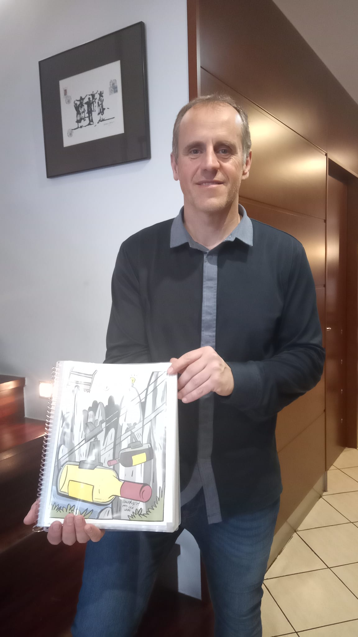 Sí, i estem també contents per això, doncs tot i no haver estat finalment els guanyadors, tot i que ser a la final ja és molt difícil, ha estat l’Ó qui s’ha endut el guardó… tot queda a casa, i per més d’un motiu, doncs la carta que hem presentat i que ha estat finalista, incorpora les il·lustracions d’un altre santfruitosenc com el Galdric Sala, però és que, a més, els responsables gràfics de la carta guanyadora, també són de casa: El Pep Creus i la Judit Viñas.