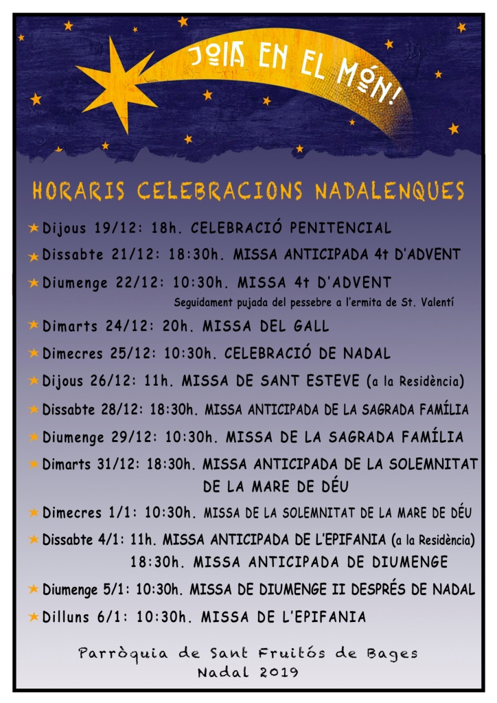 La Parròquia de Sant Fruitós informa dels horaris de les celebracions nadalenques