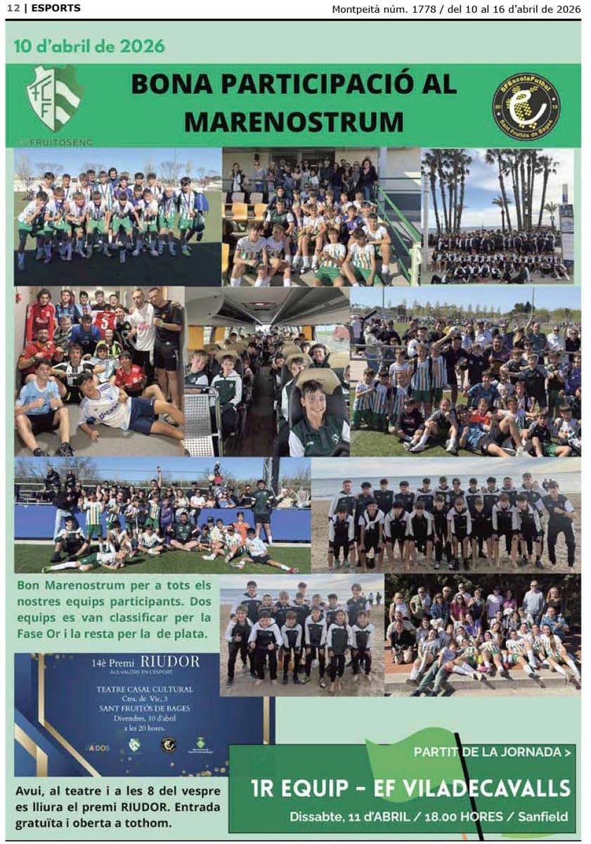 Crònica de FUTBOL, 10 d’Abril de 2026,BONA PARTICIPACIÓ AL MARENOSTRUM