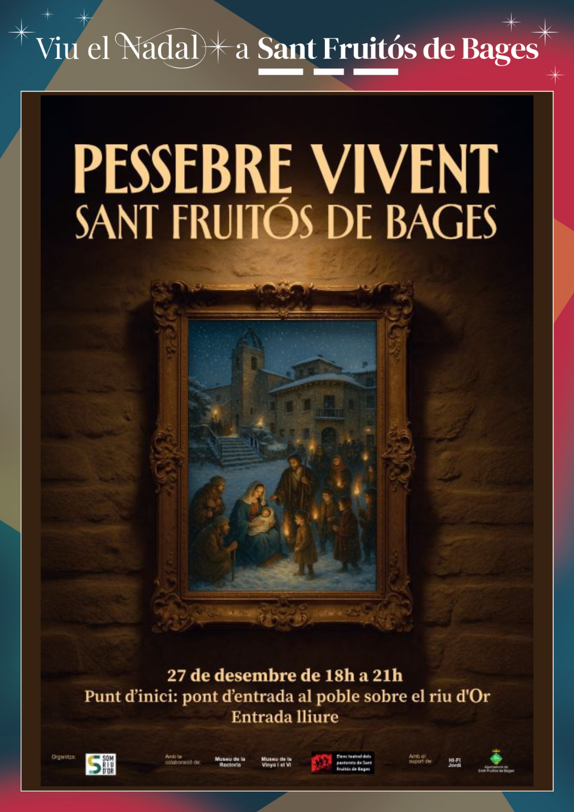 Els veïns i veïnes de Sant Fruitós de Bages i de la comarca podran gaudir enguany d’un Pessebre Vivent al barri de La Sagrera. Un total de 14 escenes tradicionals transportaran els visitants a viure recreacions del naixement, oficis antics i altres escenes tradicionals.