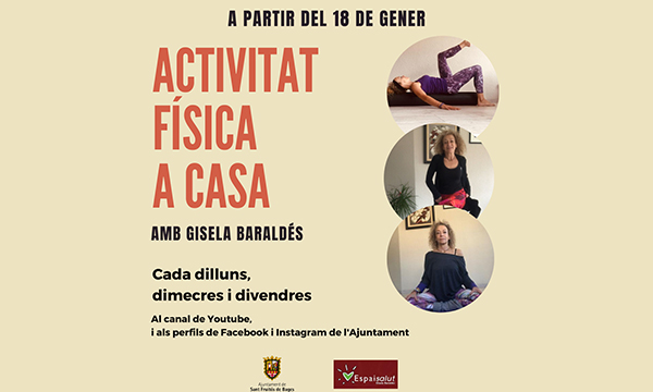 A partir d’aquest dilluns 18 de gener es podran seguir les activitats proposades a través de les xarxes socials de l’Ajuntament. Aquestes sessions combinaran el ball, la gimnàstica de manteniment, el ioga i la consciència corporal.