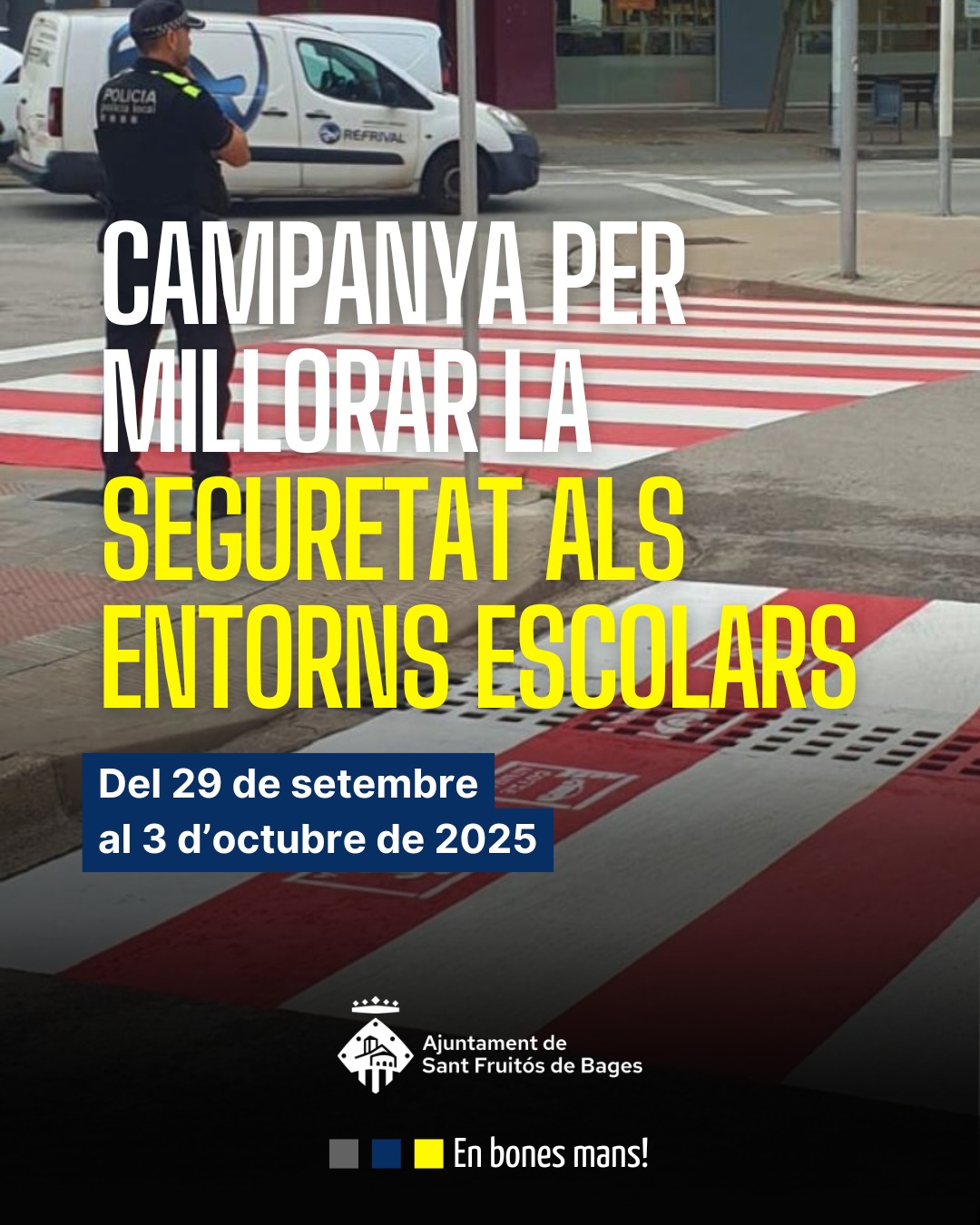 La Policia Local de Sant Fruitós de Bages s’ha adherit a la campanya impulsada pel Servei Català de Trànsit amb l’objectiu de millorar la seguretat a l’entorn dels centres educatius.