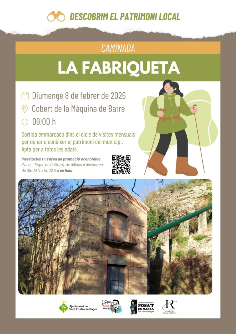 El diumenge 8 de febrer es reprendrà el cicle de sortides organitzat per l’Ajuntament per donar a conèixer el patrimoni local, amb una excursió a La Fabriqueta, la petita central hidroelèctrica situada al canal de Viladordis al seu tram per Sant Fruitós de Bages.