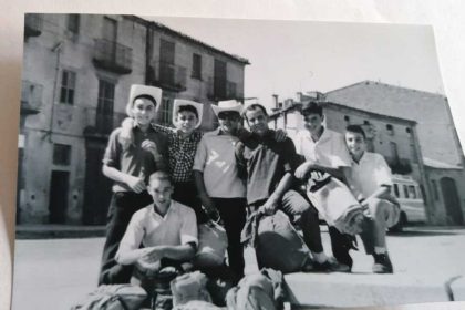 Anys 60. Ctra. de Vic, anant d’excursió. Ajupit: Josep Sala. Drets: Josep…
