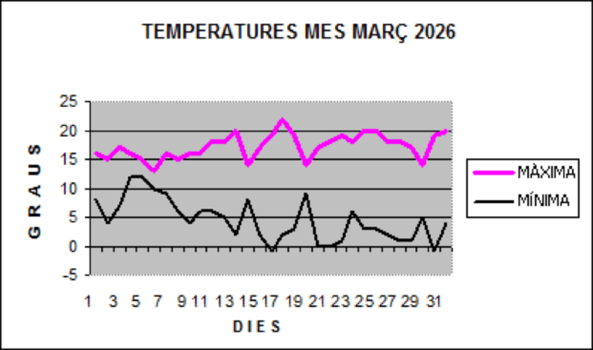 - Temperatura màxima absoluta: 22 °C (dia 17)
