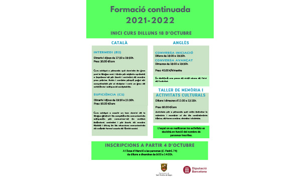 Les inscripcions pels cursos s’obriran el dilluns 4 d’octubre.