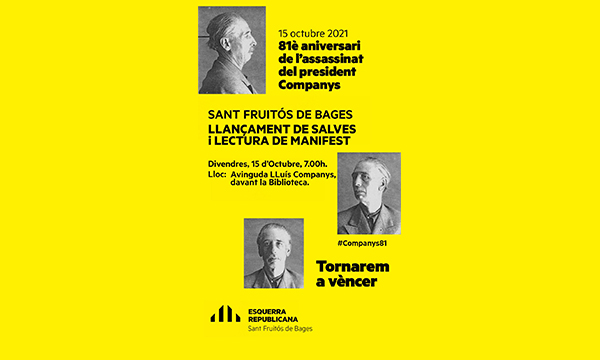 Aquest divendres dia 15 d’octubre de 2021, farà 81 anys de l’assassinat del nostre president Lluís Companys i Jover.