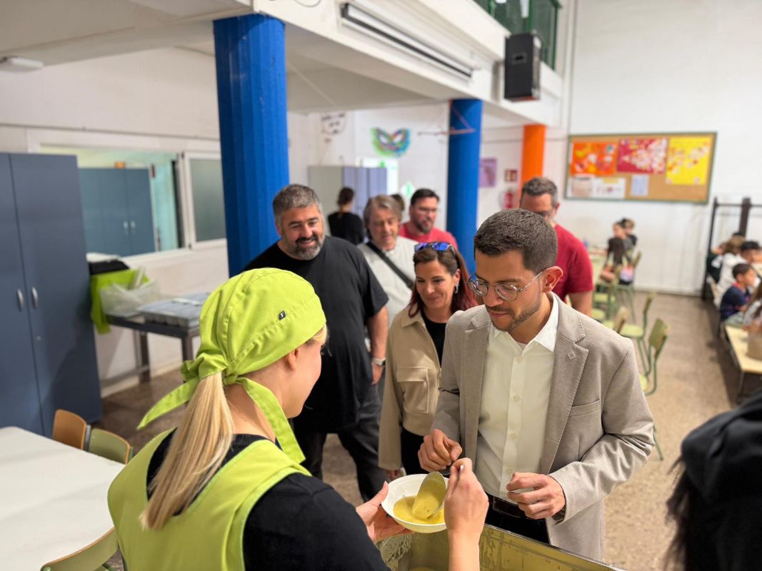 El president del Consell Comarcal del Bages, Eloi Hernàndez, ha visitat aquest dijous el menjador escolar de l’Escola Monsenyor Gibert de Sant Fruitós de Bages, on ha compartit el dinar amb l’alumnat del centre.