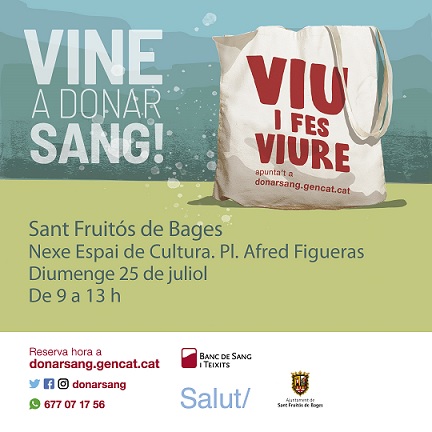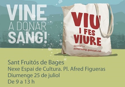 El proper diumenge 25 de juliol de 9 a 13 hores el banc de sang i teixits desplaçarà un equip mòbil a Sant Fruitós de Bages per facilitar la donació de sang a tots els veïns i veïnes del municipi.