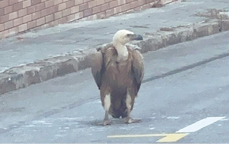 Aquest passat dimarts, els veïns del carrer Mare de Déu de Núria, a Les Brucardes, es van sorprendre en trobar-se amb un voltor al mig del carrer.