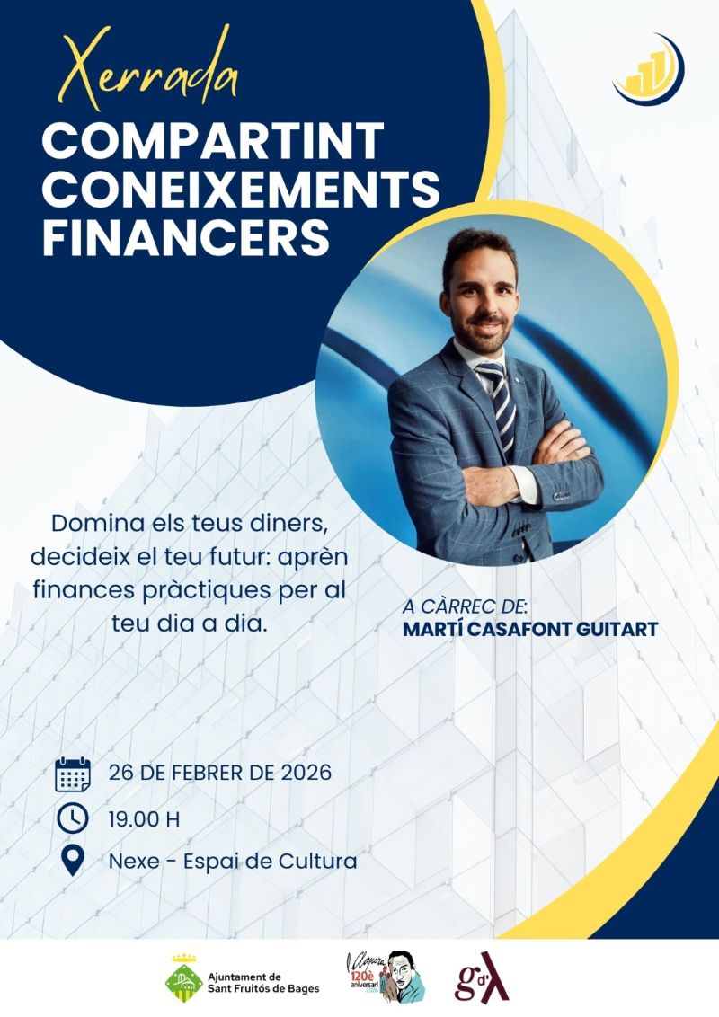 L’Ajuntament de Sant Fruitós de Bages ha organitzat la xerrada “Compartint coneixements financers”, una sessió oberta a tota la ciutadania on s’oferiran eines pràctiques per gestionar millor les finances personals en el dia a dia.